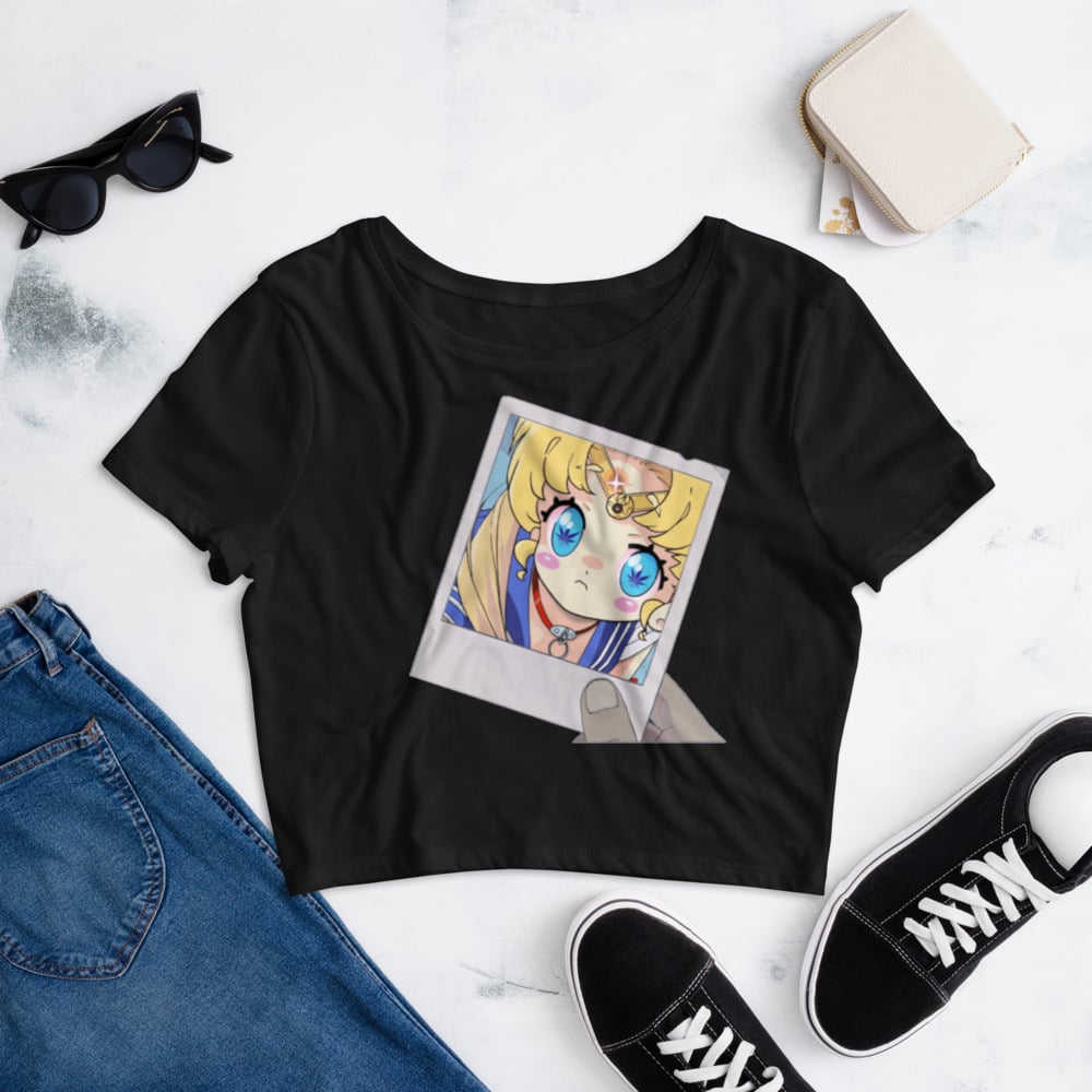 In the name of the moon I redraw Usagi as a pothead e-girl. Little moon on her forehead is Lunatone the rock Pokemon. This guardian of love crop top is perfect for shaking it like a polaroid!